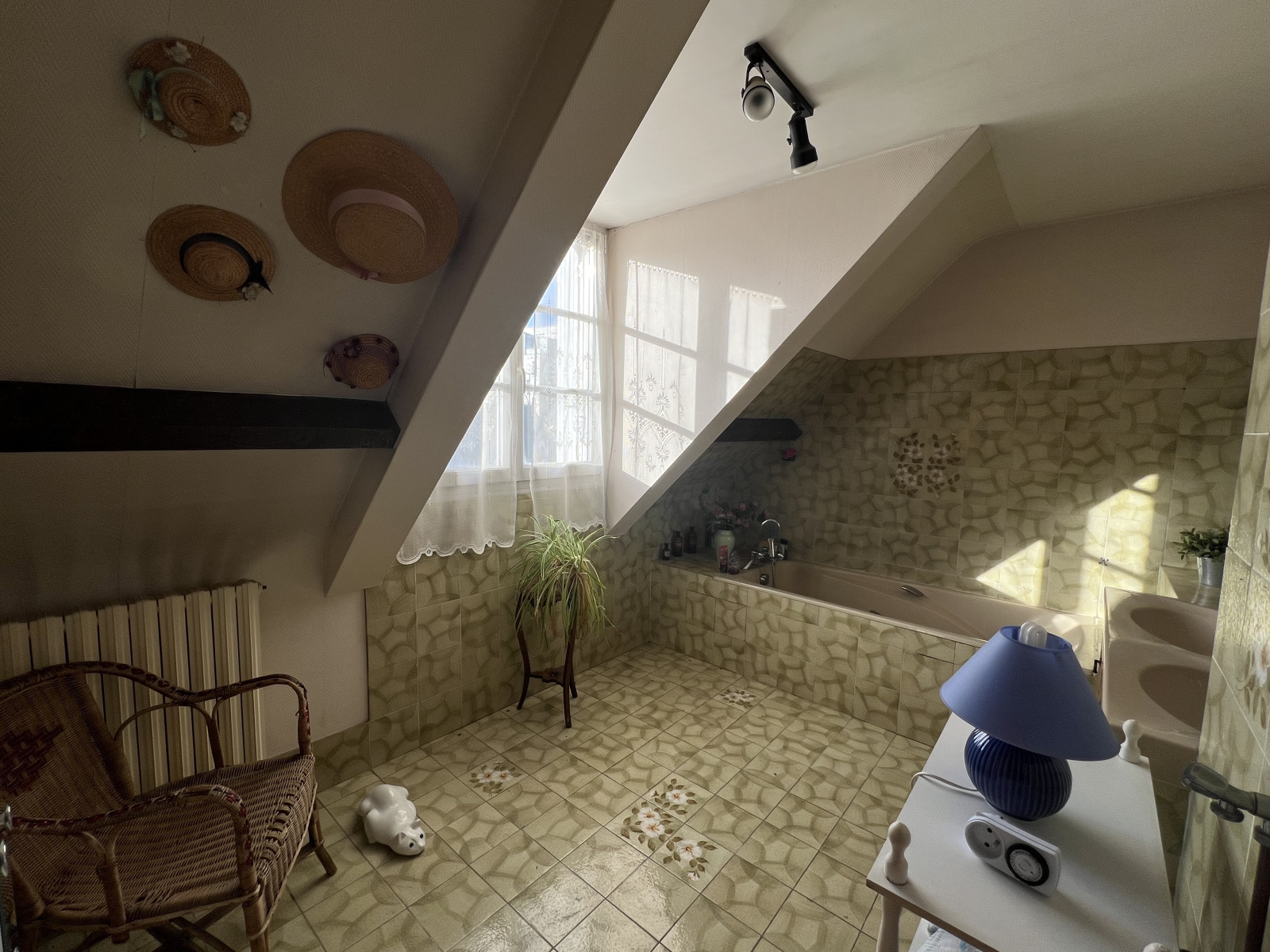 Au premier étage nous retrouvons trois chambres, une salle de bains et des WC indépendants.