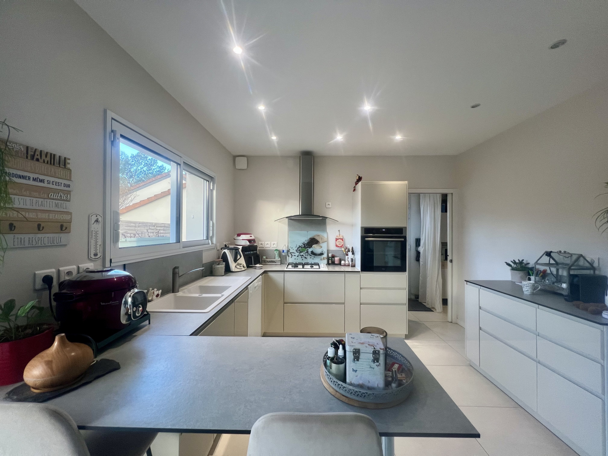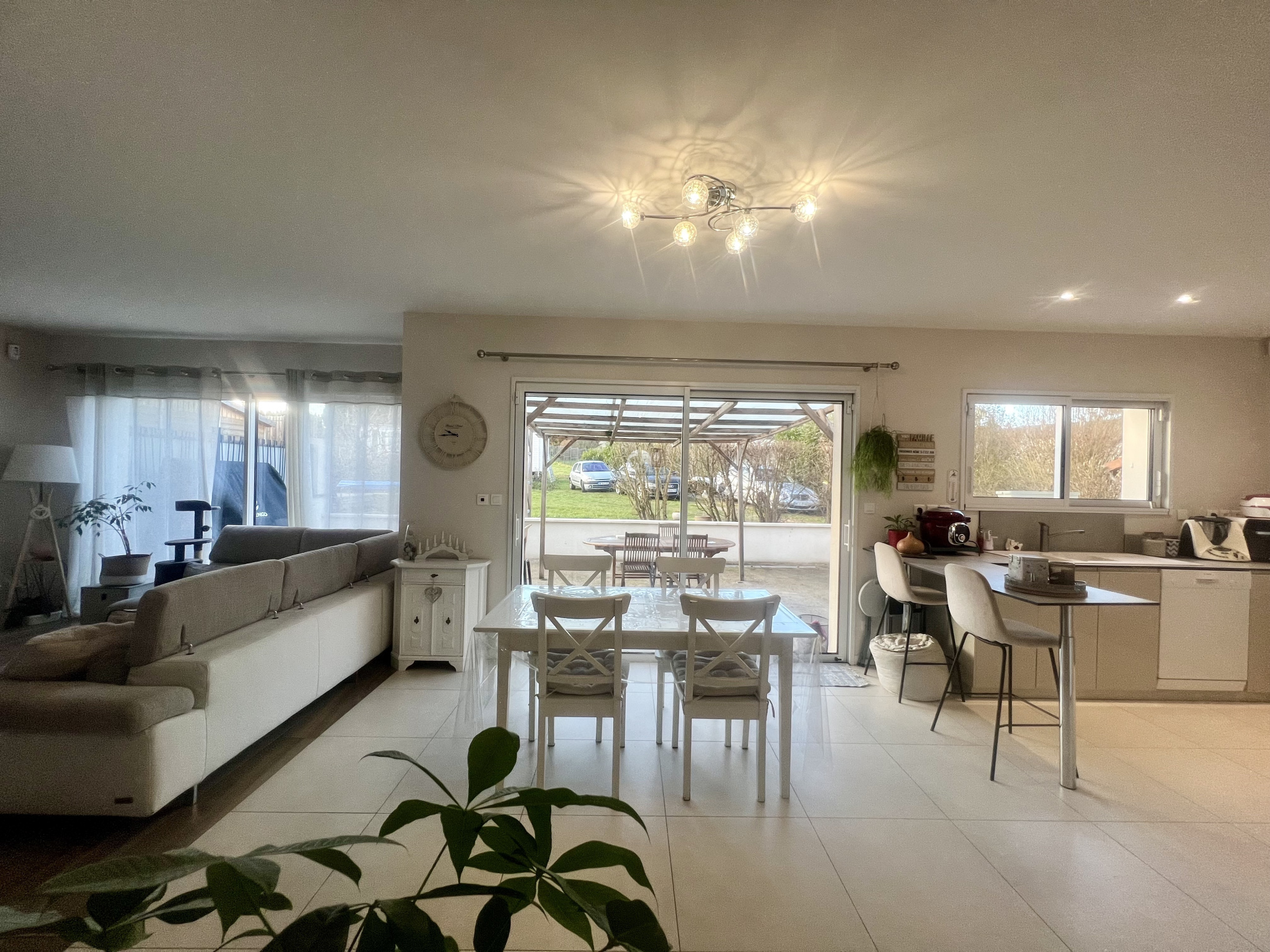 Dès l’entrée, vous découvrirez une très belle pièce de vie spacieuse et lumineuse, ouverte sur une cuisine aménagée et équipée, idéale pour les moments de convivialité. Cet espace s’ouvre directement sur une terrasse exposée plein sud, parfaite pour profiter des extérieurs en toute saison. Une arrière-cuisine avec coin technique complète cet espace de vie fonctionnel.
